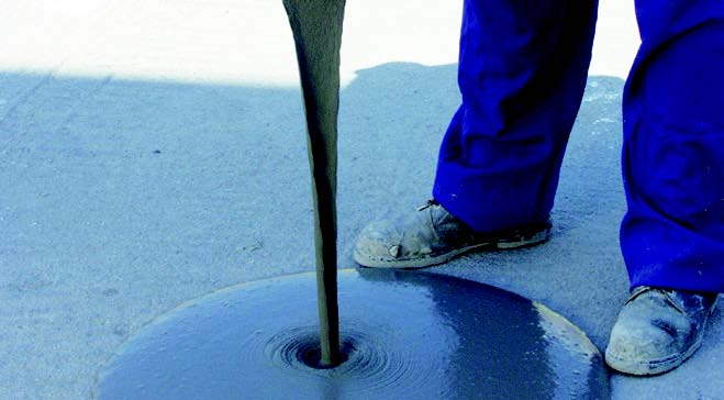 BHMA 6: Αφού στεγνώσει το NSD 620, προχωράμε στην εφαρμογή του αυτοεπιπεδούμενου δαπέδου NSF 610 (έως 10 mm)