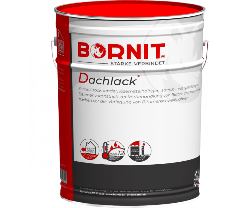 BORNIT Dachlack е универсално битумно защитно покритие за ръчно и машинно полагане. Продуктът е тестван и сертифициран съгласно DIN 18 195.