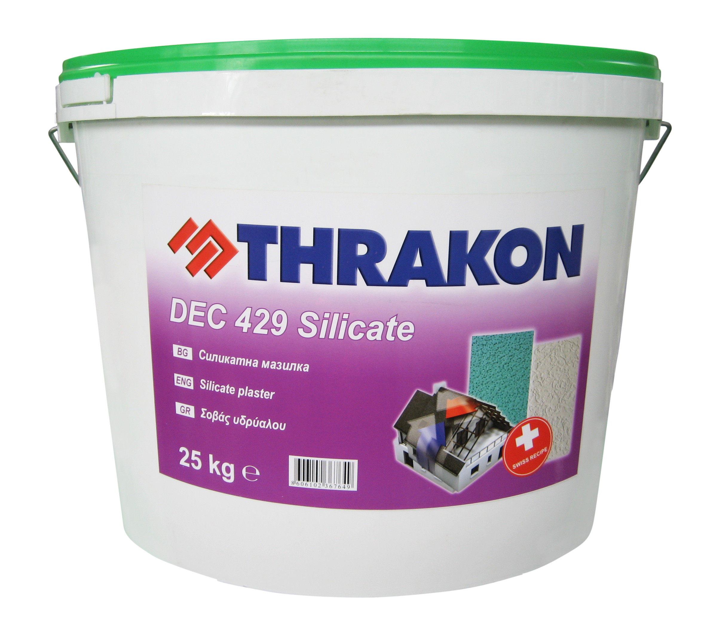 DEC 429 Silicate е готова за употреба пастообразна силикатна мазилка за декоративно оформление на фасади. Може да се полага върху бетон, циментови мазилки и всякакъв вид минерални основи. Притежава отлична влагоустойчивост и паропропускливост. Използва се като фасадна или вътрешна декоративна мазилка при ново строителство и реновации.