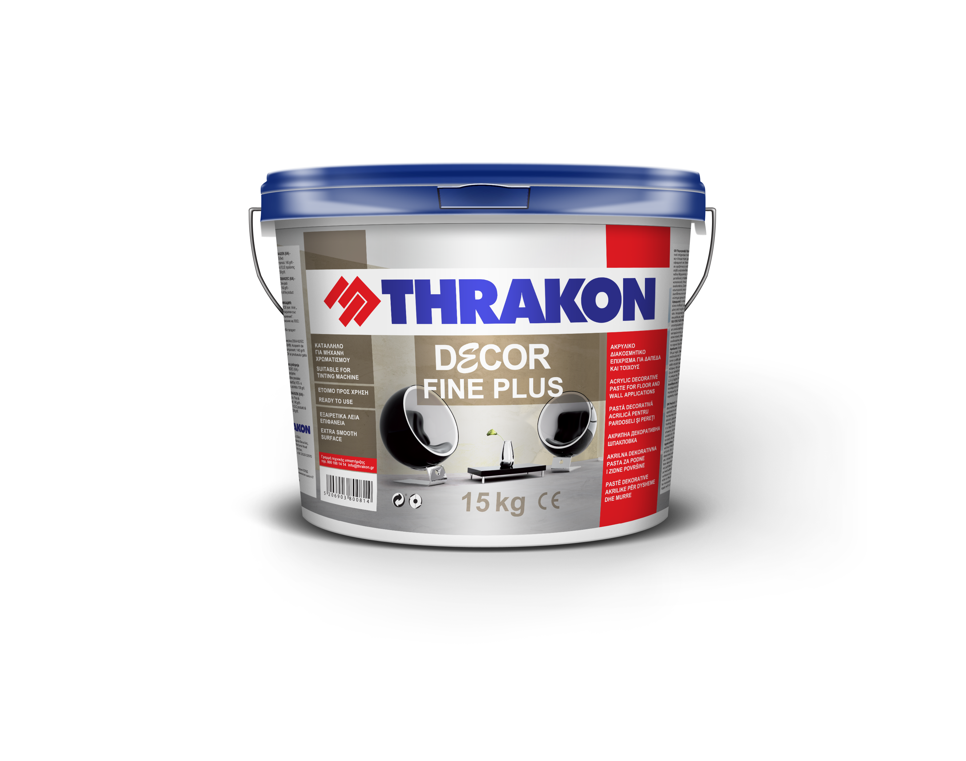 Decor Fine Plus е пастообразна, акрилна, декоративна шпакловка (с микронизиран цимент) за приложение върху хоризонтални и вертикални повърхности.