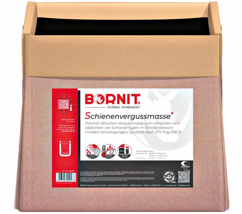 Модифицирана битумна смес за уплътняване на фуги между “релси – асфалт” и „релси – бетон”. За запълване на фуги между релсите и пътната настилка (асфалт, бетон) и обработка на фуги при временни бетонови конструкции, изложени на силни вибрации. Изисква предварително грундиране на основата.