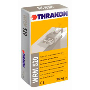 Еднокомпонентна, бързо свързваща (20 min.), полимер-модифицирана смес на циментова основа за ремонт на бетонови елементи и повърхности. Съдържа цимент, кварцов пясък и специфични бързофиксиращи добавки. WRM 520 е мразо и водоустойчив, не се свива и притежава много добра адхезия към бетона. За вътрешна и външна употреба.