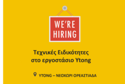 Το εργοστάσιο YTONG στο Νεοχώρι Ορεστιάδας ζητά να προσλάβει τις παρακάτω ειδικότητες Μηχανολόγος (ΑΕΙ/ΤΕΙ/ Αποφοίτους ΕΠΑΛ) Ηλεκτρολόγο Εργοδηγό...