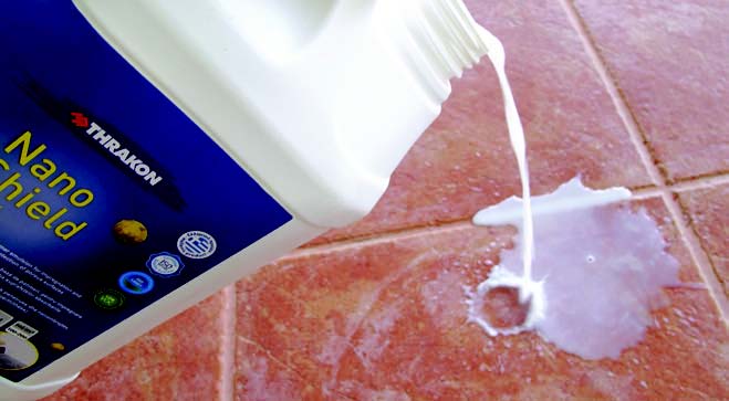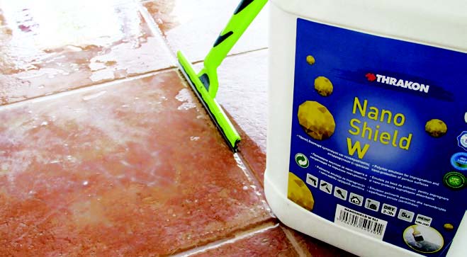 Application of NANOSHIELD W Nanomolecular product for protection of porous surfaces against moisture and salts. NANOSHIELD W is applied for the durable protection of tile grouts, since we reinforce its surface against humidity, moisture, salts and appearance of fungi.