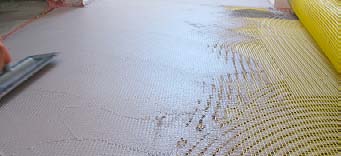 system. CLIMAPLUS fibreglass mesh should overlap each other by 10cm (black lines). When application is made on floors, mixture is walkable after 6-10