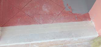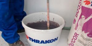 ATTENTION: Substrate must be clean, solid and as level as possible. Crumbled plasters (masonry) must be repaired by using the fast setting repairing plaster of THRAKON, WRM 550*. Repairs should also be made at the floors, by repairing cracks or gaps on concrete with one of THRAKON’s repairing products