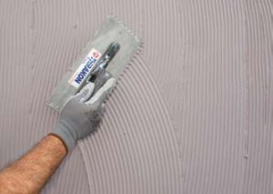 then levelled with the smooth side. The choice of the trowel and the dimensions of the teeth of the toothed spatula depends on the thickness of the layer applied by