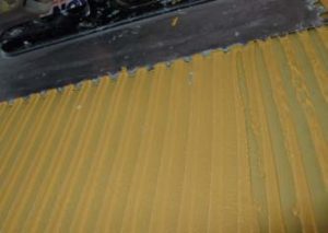 Spread the product on the properly prepared substrate (Steps 1-3) with a toothed stainless steel trowel (teeth 6 – 10 mm). The application is easier when made at 1 m layers of applied product.