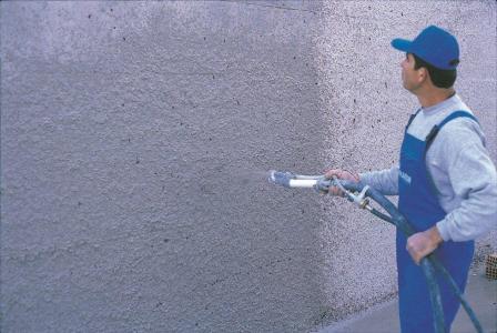 The waterproofing of external surfaces of buildings made using the ready water-repellent plaster of THRAKON which prevent the infiltration of rainwater while allowing breathability of the masonry.