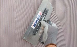 Step 4: Then, you press the surface by using a rectangular stainless steel spatula, making semicircular or straight movements with your hands, in order to engage the grout with microcement and give a uniform decorative effect, with waves, lines or “bubbles”. Then again press the surface with a large rectangular smooth stainless steel spatula (American type) which is firstly wetted with clean water in order, to give a smooth final result.