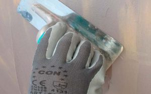 Step 3:Spread the grout on to the prepared surface with a small spatula. This is the phase where the applicator uses his abilities, so the spreading is irregular or specific, thicker or thinner.