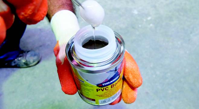 Σε αυτήν την περίπτωση χρησιμοποιούμε την κόλλα PVC Bond, όπου είναι ιδανική για τη γρήγορη και άρρηκτη συγκόλληση σωλήνων PVC.