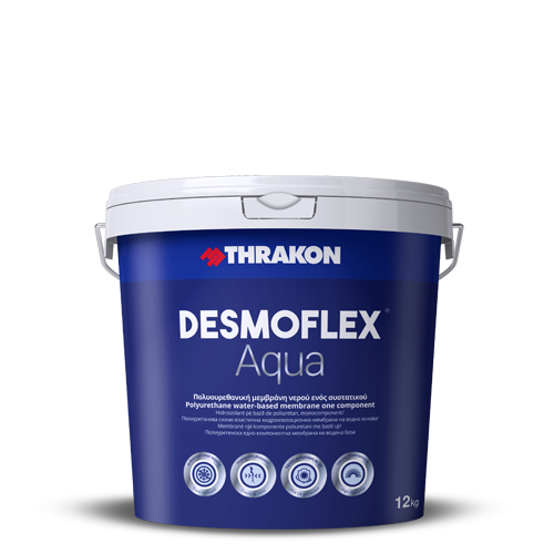 DESMOFLEX® Aqua is a high quality white, aliphatic, polyurethane water-based membrane of one component, suitable for long-term waterproofing. Its unique composition is designed to create a single, elastic, hydrophobic membrane that completely covers capillaries and cracks up to 2mm. It offers high protection against humidity (suitable for surfaces with stagnating waters) as well as very high protection against solar ultraviolet (UV) radiation and mechanical stressing. After application, the surface remains walkable and resistant to stagnating waters, maintaining high whiteness over time.