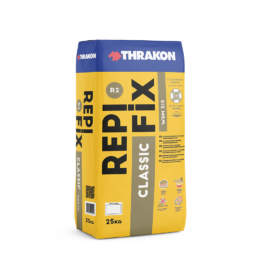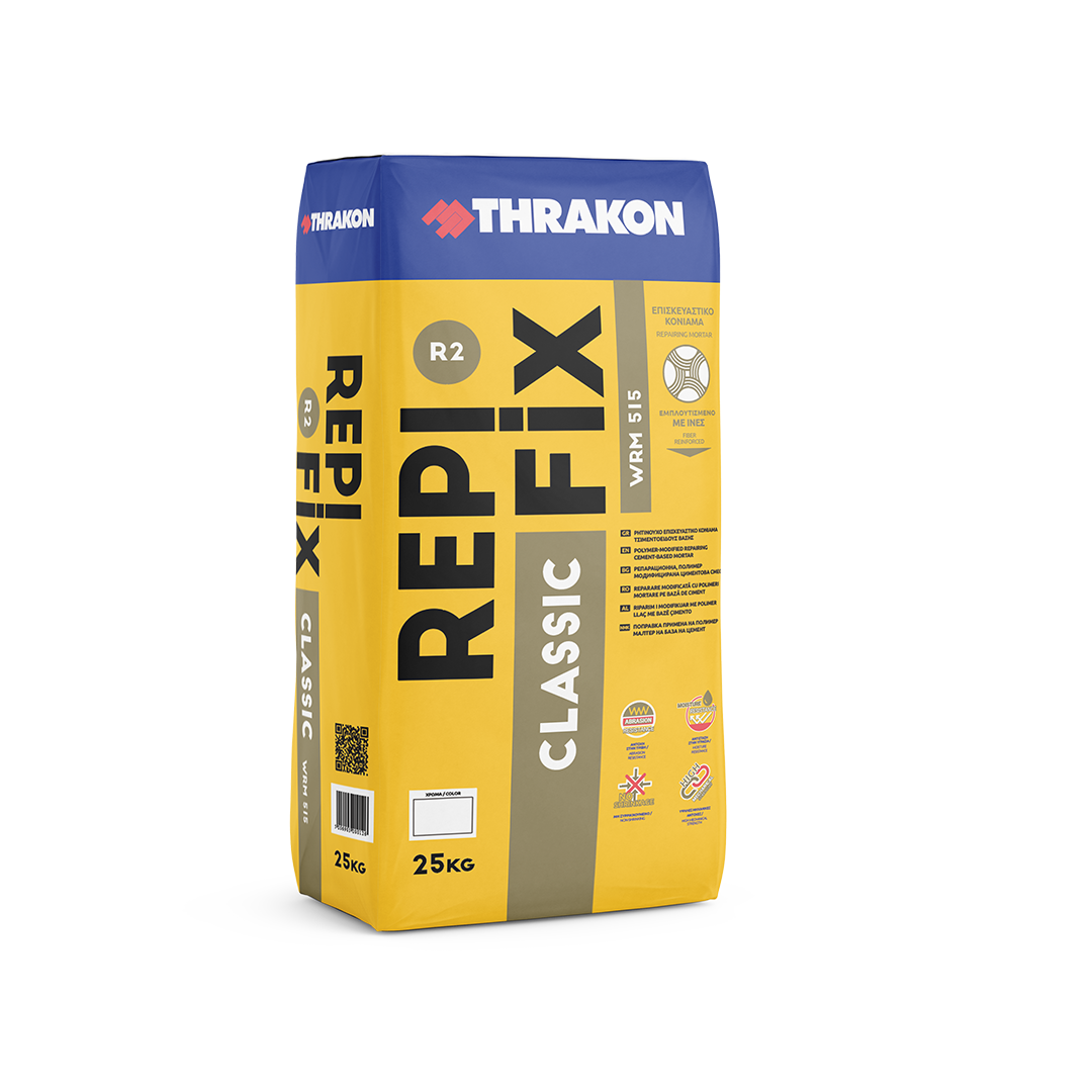 Repairing cement based product, one- component, type PCC R2 based on ΕΝ 1504-3. Suitable for repairs of concrete surfaces, masonry, plaster, construction ridges of roofs, gutters construction etc.
