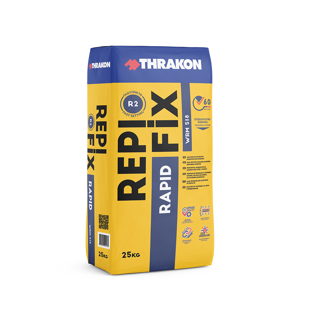 WRM 518 is a one-component, resinous, cement based, fast setting repairing material, type PCC R2 based on ΕΝ 1504-3.