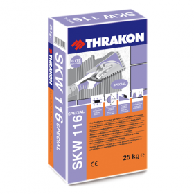 SKW 116 est un adhésif en couche mince à base de ciment. Il est polymère modifié et adapté aux applications sur les surfaces horizontales et verticales. Il se compose de ciment, de sable de quartz, de charges de citron et d’adjuvants. Il est classé comme type C1TE selon EN 12004.