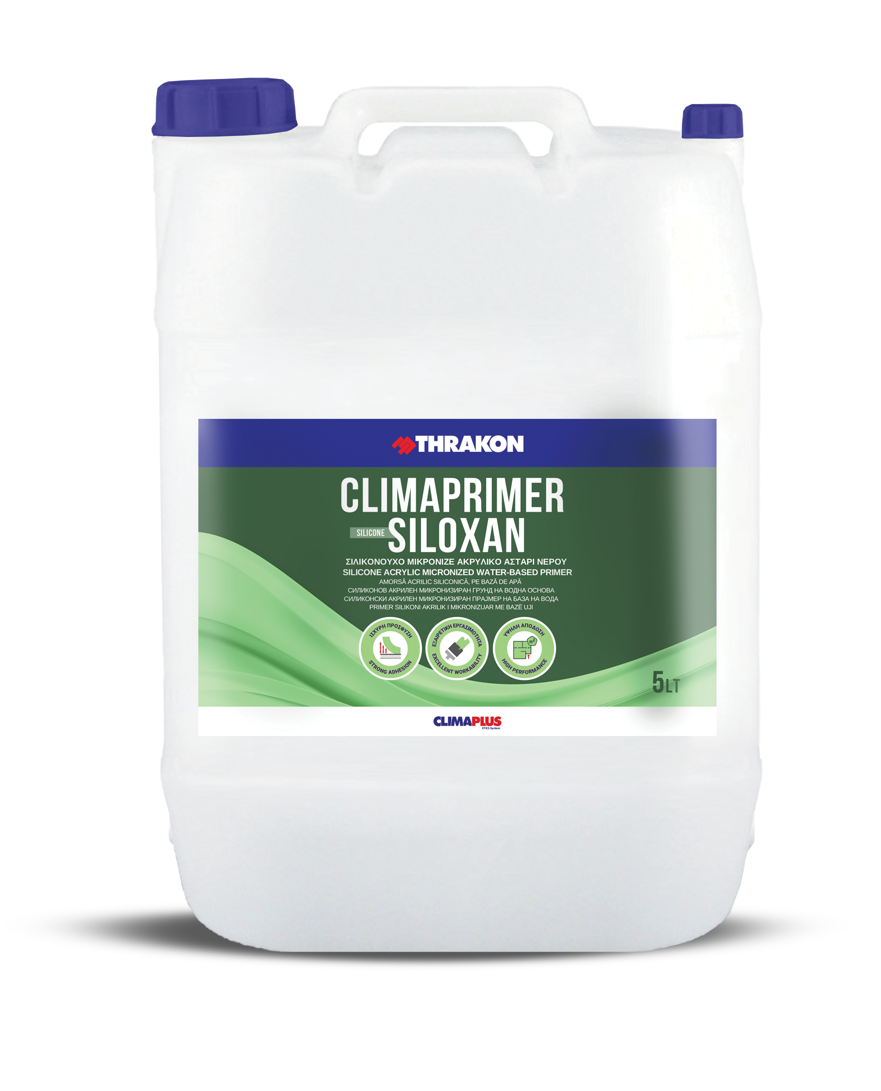 Το CLIMAPRIMER SILOXAN είναι ένα υψηλής ποιότητας έγχρωμο, άοσμο, αδιάβροχο, ακρυλικό υπόστρωμα νερού, νανομοριακής δομής, φιλικό προς το περιβάλλον και το χρήστη. Κατά την εφαρμογή του ενισχύονται νέες κι υφιστάμενες πορώδεις εξωτερικές και εσωτερικές επιφάνειες (ασβέστης, κακής ποιότητας παλαιά χρώματα, μπετόν, πέτρα, σοβάς, σπατουλαριστοί τοίχοι, τούβλα, κ.λπ.), ενώ βοηθητικά χρωματίζει την επιφάνεια υπόλευκα, ώστε να σηματοδοτεί τα σημεία εκείνα που έχει πραγματοποιηθεί το αστάρωμα. Η μοναδική του σύνθεση προσδίδει στην εφαρμοζόμενη επιφάνεια αδιαβροχοποίηση κι άριστη διαπνοή, ενώ ταυτόχρονα θωρακίζει το υπόστρωμα από την ανερχόμενη υγρασία του εδάφους και τη μετανάστευση αλάτων, από το υπόστρωμα προς την τελική χρωματισμένη περιοχή. Η χρήση του ενδείκνυται για το αστάρωμα εξωτερικών επιφανειών, οι οποίες στη συνέχεια θα καλυφθούν με 100% ακρυλικά, ελαστομερή, πλαστικά και σιλικονούχα χρώματα, όπως και με στεγανωτικά, τσιμεντοχρώματα και RELIEF. Τέλος, παρουσιάζει ισχυρή πρόσφυση, βαθιά διεισδυτικότητα κι ανθεκτικότητα σε αλκαλικά περιβάλλοντα εφαρμογής, ενώ εξασφαλίζει μια άριστη βάση υποδοχής του τελικού χρώματος, παρέχοντας υψηλές αποδόσεις, βελτιωμένη καλυπτικότητα και σημαντικά μεγαλύτερη αντοχή στο χρόνο.