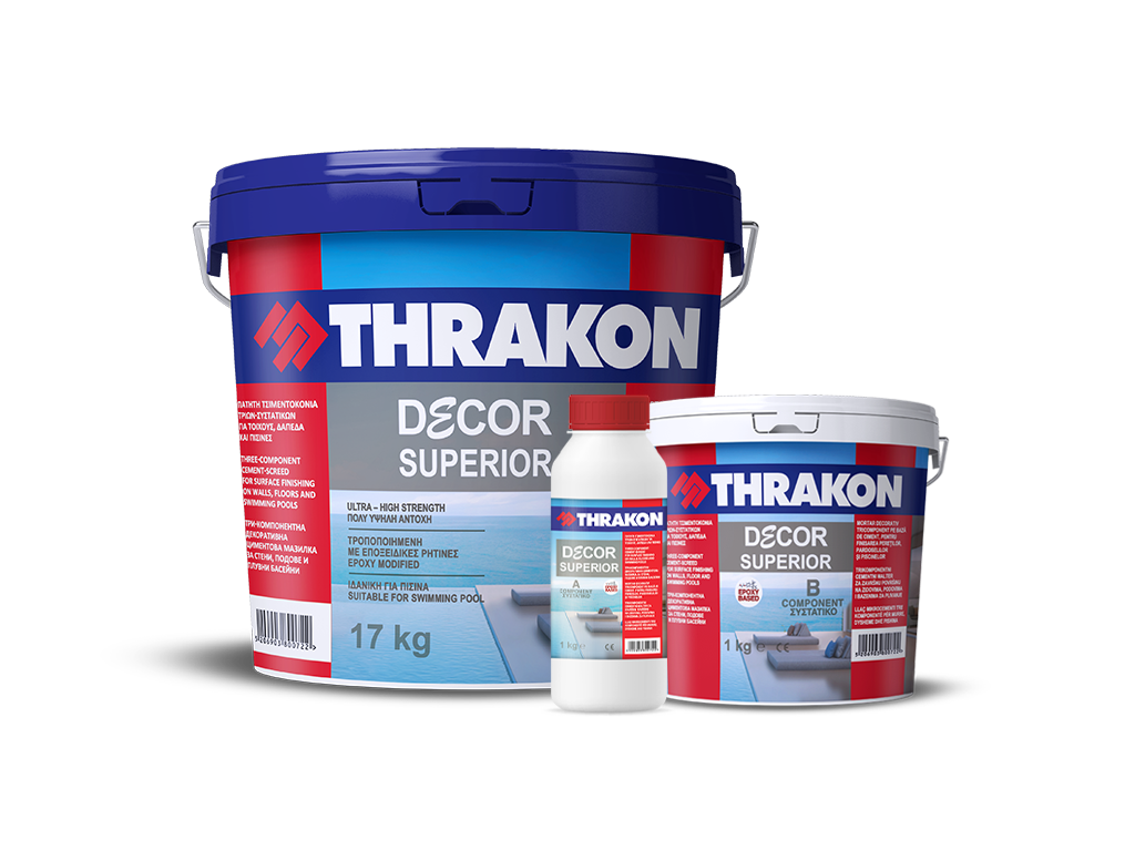 Η πατητή τσιμεντοκονία DECOR SUPERIOR είναι ένα ρητινούχο κονίαμα 3 συστατικών μεγάλης αντοχής, ενισχυμένο με συνθετικά πρόσθετα και αδρανή
