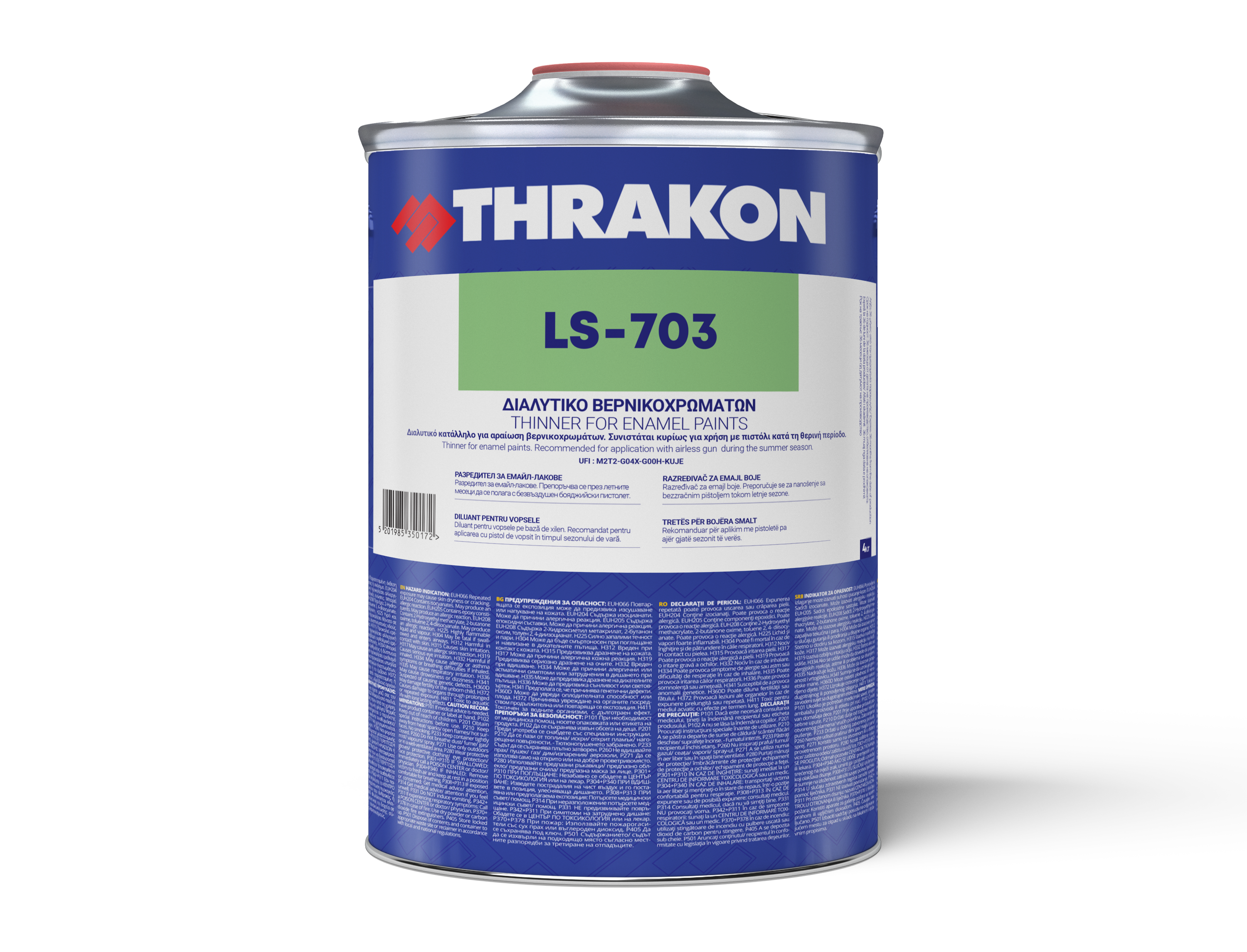 - Κατάλληλο κυρίως για χρήση με πιστόλι. Το ΔΙΑΛΥΤΙΚΟ LS - 703 είναι εύφλεκτο υλικό, γι' αυτό συνίσταται η χρήση του να γίνεται μακριά από πηγές ανάφλεξης και σε καλά αεριζόμενους χώρους.