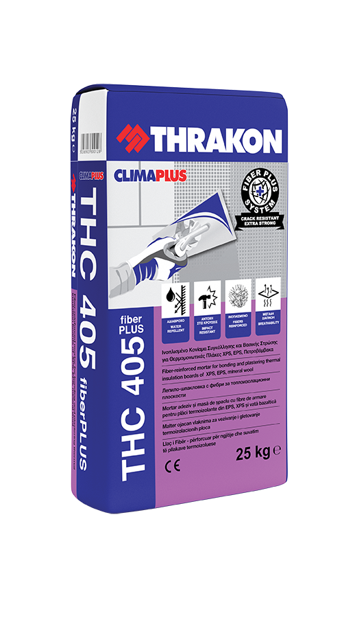 Πρόκειται για εξειδικευμένο προϊόν, ιδανικό για την συγκόλληση και το σοβάτισμα θερμομονωτικών πλακών, όπως διογκωμένη πολυστερίνη (EPS), εξηλασμένη πολυστερίνη (XPS) και πετροβάμβακα, σε συστήματα εξωτερικής θερμομόνωσης κτιρίων. Αποτελείται από τσιμέντο, χαλαζιακή άμμο με μέγιστο κόκκο 0,5mm, ασβεστολιθικά fillers και βελτιωτικά πρόσθετα. Το προϊόν THC 405 PLUS έχει πολύ ισχυρή πρόσφυση σε όλα τα συνήθη υποστρώματα και τις θερμομονωτικές πλάκες, υψηλή ελαστικότητα, αντοχή στην ψύξη και την υγρασία. Είναι κατάλληλη για εσωτερική και εξωτερική χρήση. Ανταποκρίνεται στα ευρωπαϊκά πρότυπα ΕΝ 13499 και ΕTAG 004.