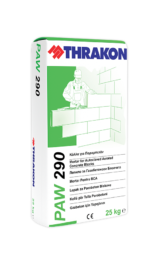 Το προϊόν PAW 290 είναι ένα κονίαμα ενός συστατικού, τσιμεντοειδούς βάσης, τροποποιημένο με πολυμερικά πρόσθετα, κατάλληλο για χτίσιμο δομικών στοιχείων από πορομπετόν (YTONG, ALFA BLOCK, κ.τ.λ.). Αποτελείται από τσιμέντο, χαλαζιακή άμμο, ασβεστολιθικά fillers και βελτιωτικά πρόσθετα. Έχει πολύ ισχυρή συγκόλληση...