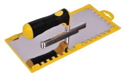 Περιγραφή : Οδοντωτή σπάτουλα διαστάσεων 280 x 120 mm με δόντια 6 x 6 mm, 8 x 8 mm και 10 x 10 mm. Από ανοξείδωτο ατσάλι με εργονομική λαβή (TPR).
