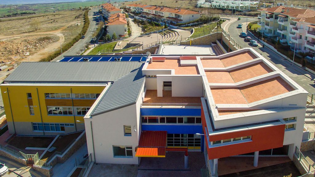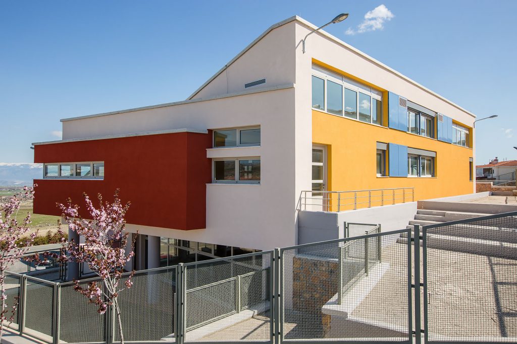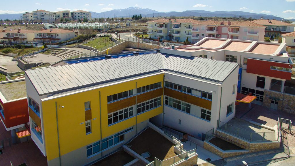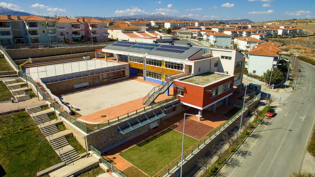 Εφαρμογή του Συστήματος Εξωτερικής Θερμομόνωσης CLIMAPLUS και επιχρισμάτων THRAKON στο Βιοκλιματικό σχολείο στη Ζώνη Ενεργού Πολεοδομίας Κοζάνης. Το έργο αυτό παρουσίασε ιδιαίτερες απαιτήσεις καθώς η εφαρμογή του CLIMAPLUS έγινε σε επιφάνει 1800τμ και των επιχρισμάτων σε επιφάνεια 6000τμ.