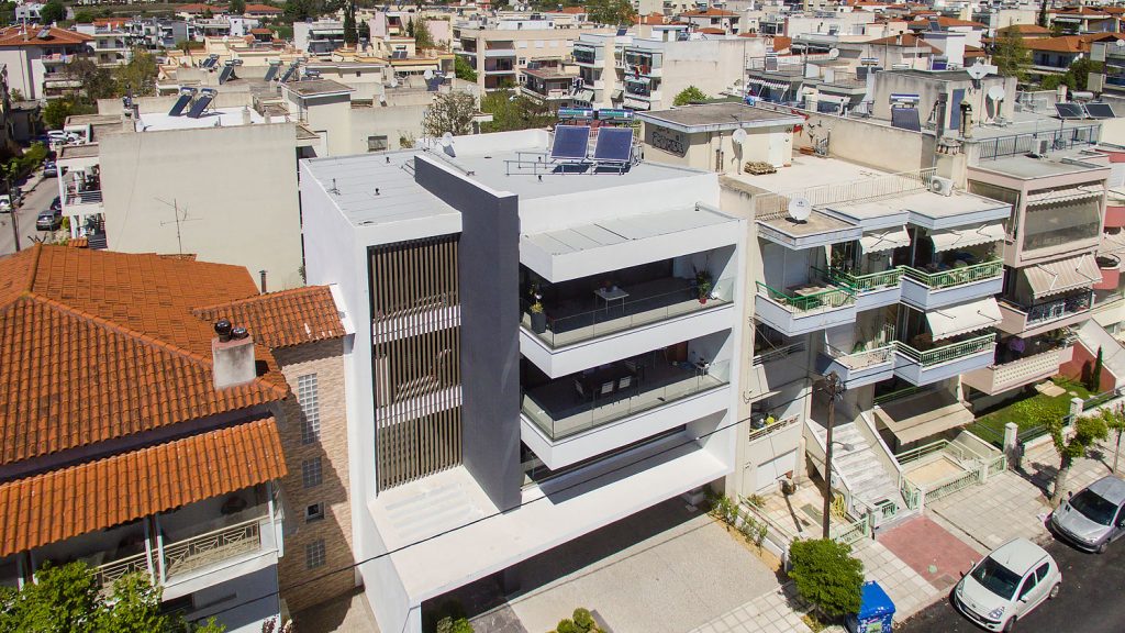 Εφαρμογή του Συστήματος Εξωτερικής Θερμομόνωσης CLIMAPLUS και κολλών και αρμόστοκων σε πολυκατοικία στην περιοχή Θέρμη Θεσσαλονίκης. Η επιφάνεια που καλύφθηκε ανέρχεται σε 400τμ.