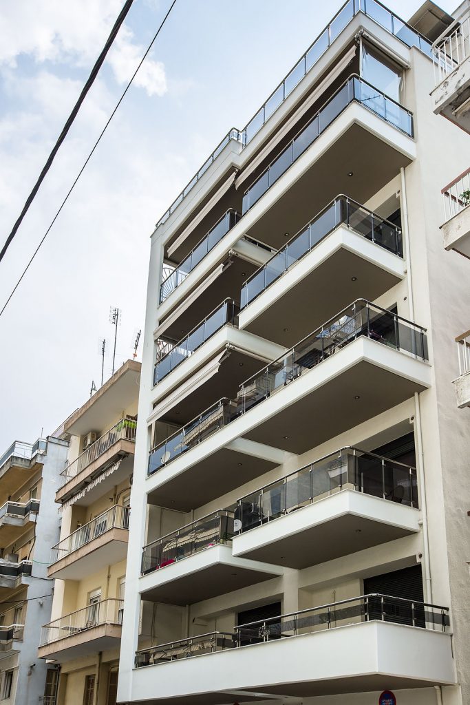 Εφαρμογή του Συστήματος Εξωτερικής Θερμομόνωσης CLIMAPLUS σε πολυκατοικία στη Θεσσαλονίκη, στην οδό Ψαρρών. Η επιφάνεια που καλύφθηκε ανέρχεται σε 900τμ.