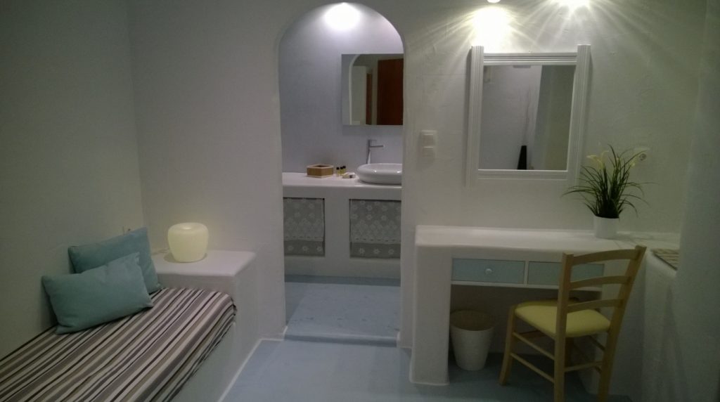 Εφαρμογή συστήματος πατητής τσιμεντοκονίας DECOR από τη THRAKON σε ξενοδοχείο στην Ίο. Η εφαρμογή έγινε σε τοίχο και στο δάπεδο με πατητή τσιμεντοκονία DECOR 2 συστατικών και DECOR FINE PLUS.
