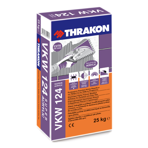 VKW 124 este un adeziv pentru plăci ceramice, pe bază de ciment. Conţine polimeri modifi caţi și este recomandat pentru suprafeţe orizontale şi