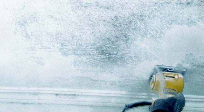 BHMA 2: Καθαρίζουμε καλά την επιφάνεια από σαθρά με μια σπάτουλα και τρίβουμε καλά την επιφάνεια με γυαλόχαρτο, προκειμένου να την λειάνουμε