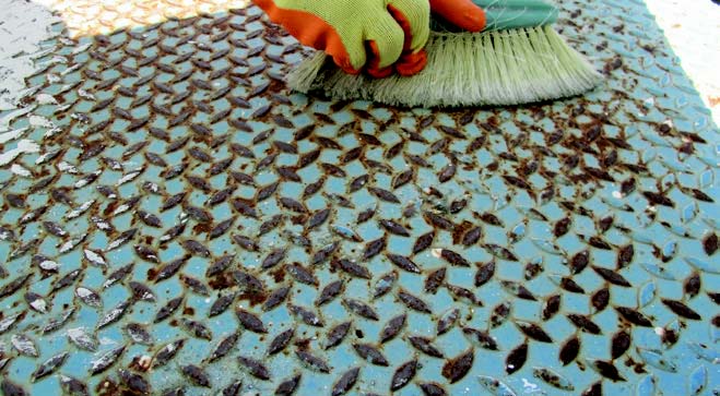 Τρίβουμε καλά την επιφάνεια με ένα γυαλόχαρτο
