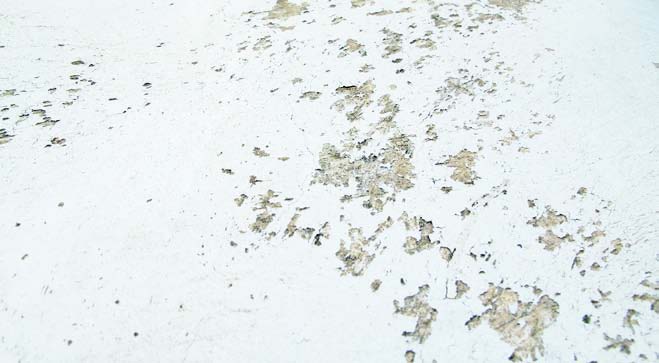 Διαρροή υγρασίας από το σοβατεπί, με αποτέλεσμα να εμφανίζονται σαθρά και άλγη επάνω στην επιφάνεια.