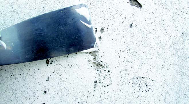 BHMA 2: Εάν υπάρχουν σαθρά, ξεφτισμένα ή ξεφλουδισμένα παλιά χρώματα, τα αφαιρούμε με μία μεταλλική σπάτουλα.