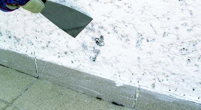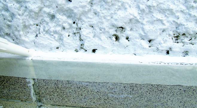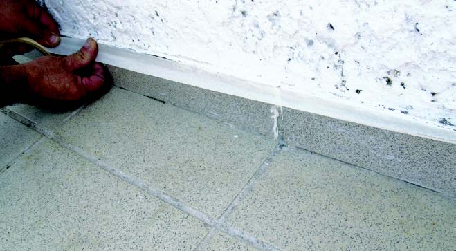 BHMA 4: Στα σημεία όπου το σοβατεπί έρχεται σε επαφή με τον τοίχο (σοβά) εφαρμόζουμε την πολυουρεθανική μαστίχη ELASTO PU, για να τα στεγανώσουμε