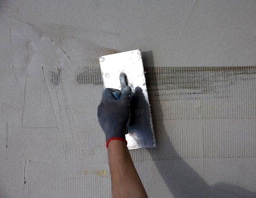 - Εφαρμογή της δεύτερης στρώσης του ινοπλισμένου επιχρίσματος THC 405, προκειμένου να καλυφθούν τα μάτια του υαλοπλέγματος